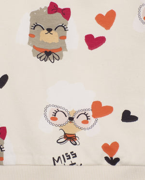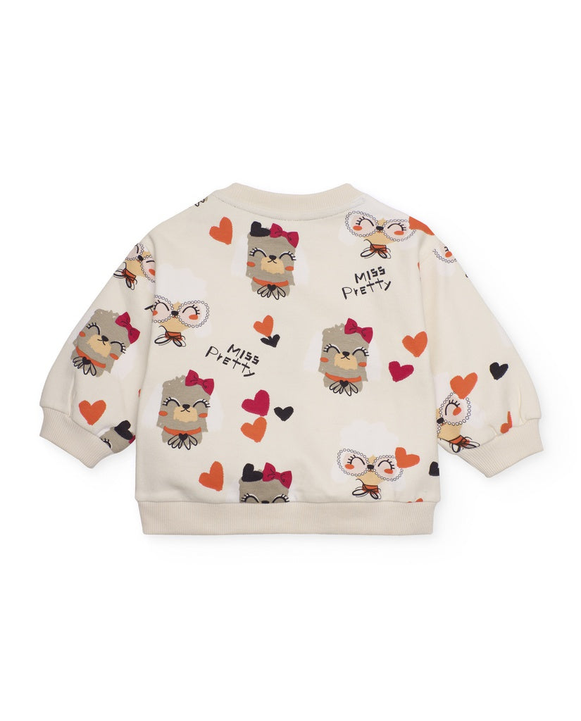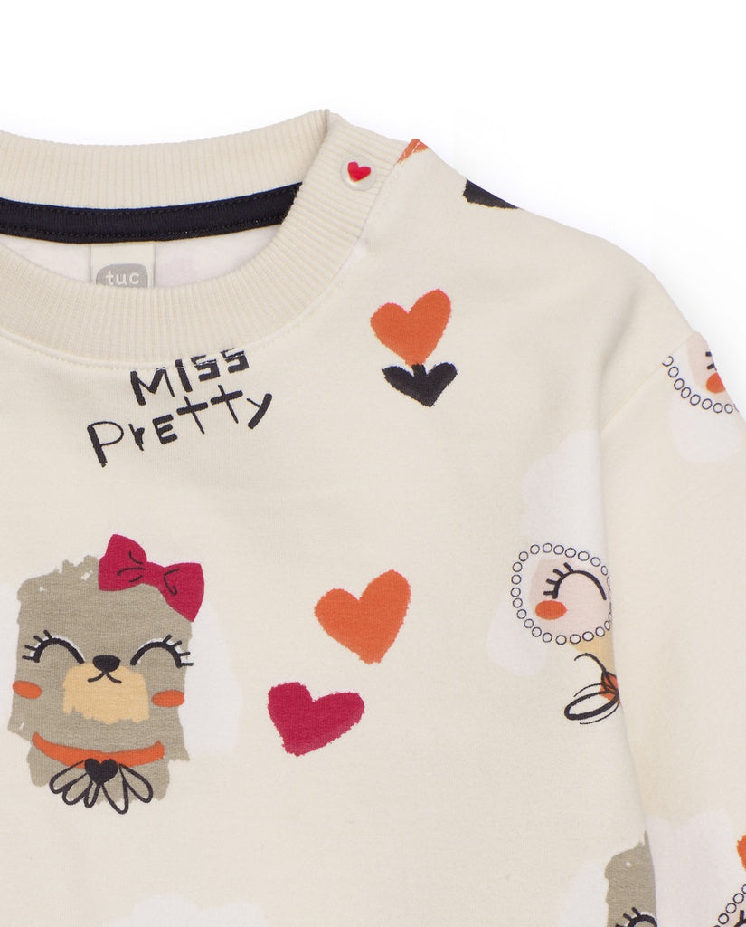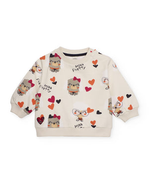 Felpa  color beige con cuori e gufi