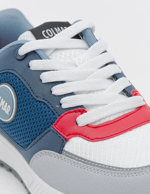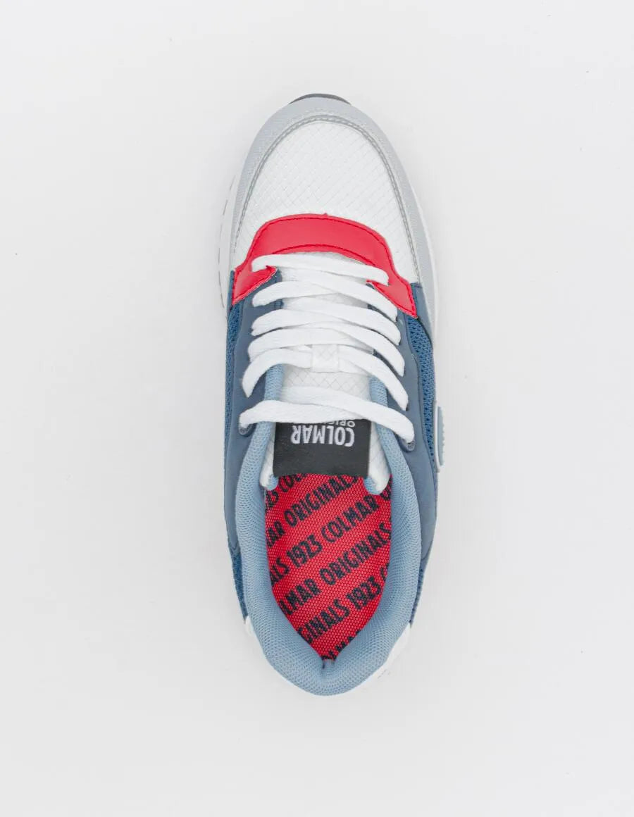 neaker unisex bianca con con logo gommato a contrasto avio e bianco. Inseti lampone, ghiaccio, neri e navy. Dettaglio bianco sul tallone. Inserti in mesh per garantire la massima traspirazione. Chiusura con lacci per garantire il massimo comfort. Sottopiede estraibile igienico e pratico. Suola con dettaglio lampone.  Tomaia in ecopelle e tessuto, interno in tessuto e suola in gomma.